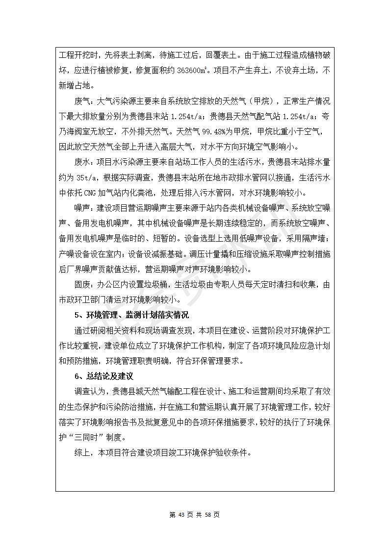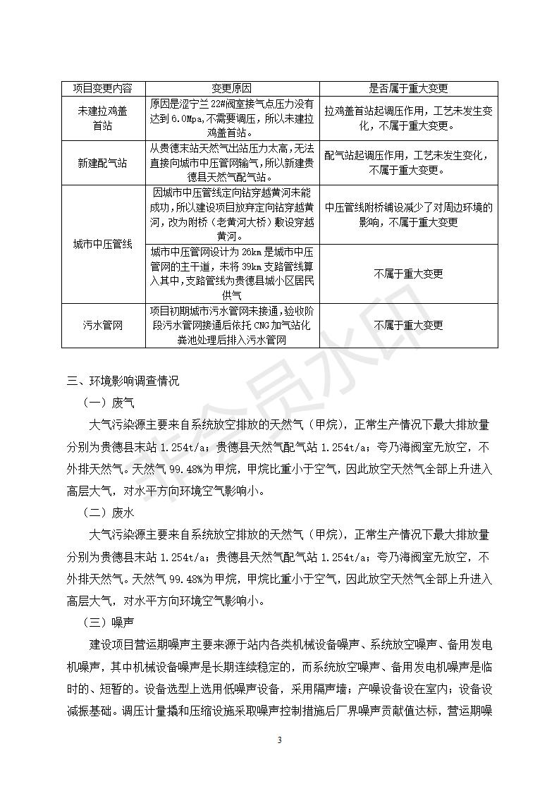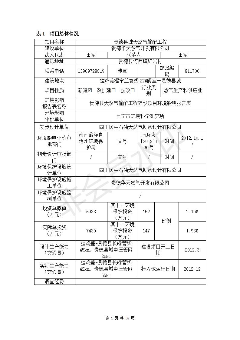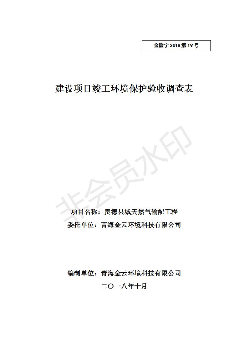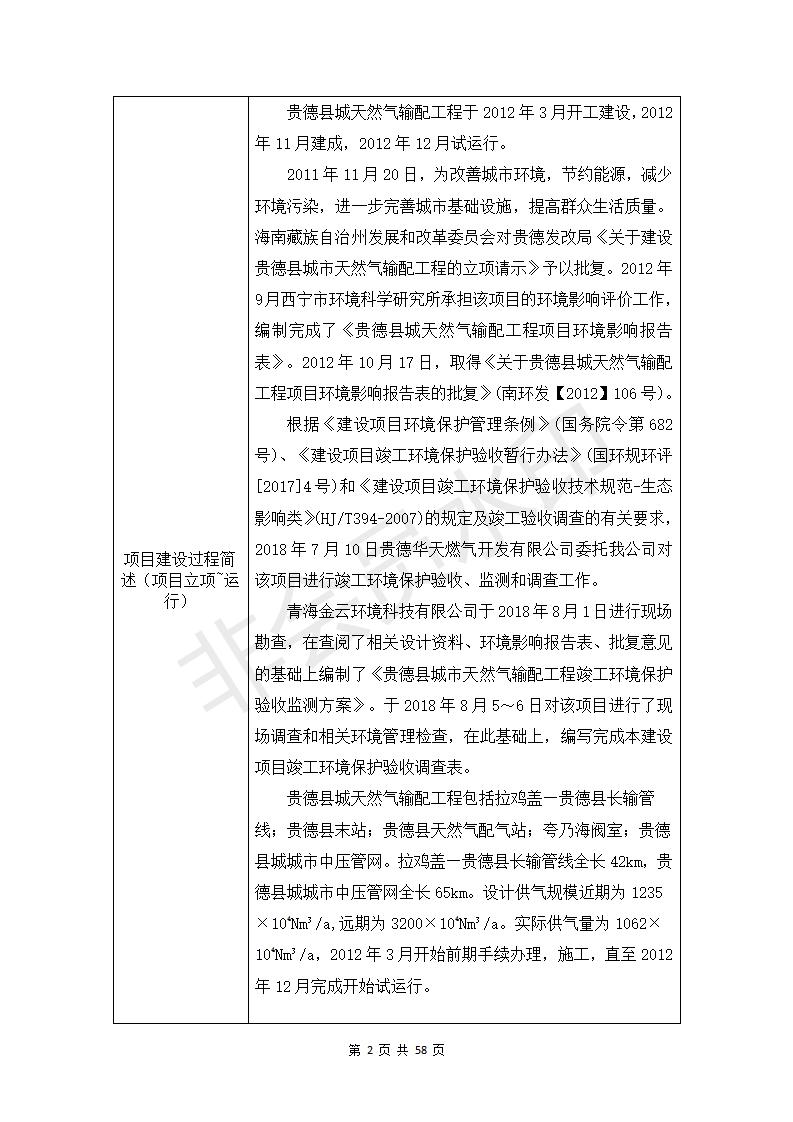 根據(jù)中華人民共和國務(wù)院令第682號(hào)《國務(wù)院關(guān)于修改〈建設(shè)項(xiàng)目環(huán)境保護(hù)管理?xiàng)l例〉的決定》和《建設(shè)項(xiàng)目竣工環(huán)境保護(hù)驗(yàn)收暫行辦法》(國務(wù)院令682號(hào)),貴德縣城輸配管線工程竣工環(huán)境保護(hù)驗(yàn)收內(nèi)容(包括竣工環(huán)境保護(hù)驗(yàn)收調(diào)查表和驗(yàn)收意見)公示如下