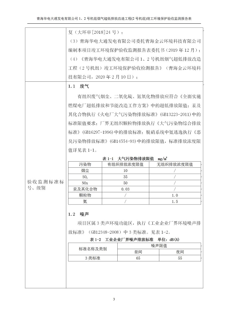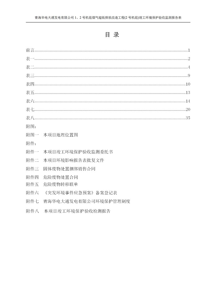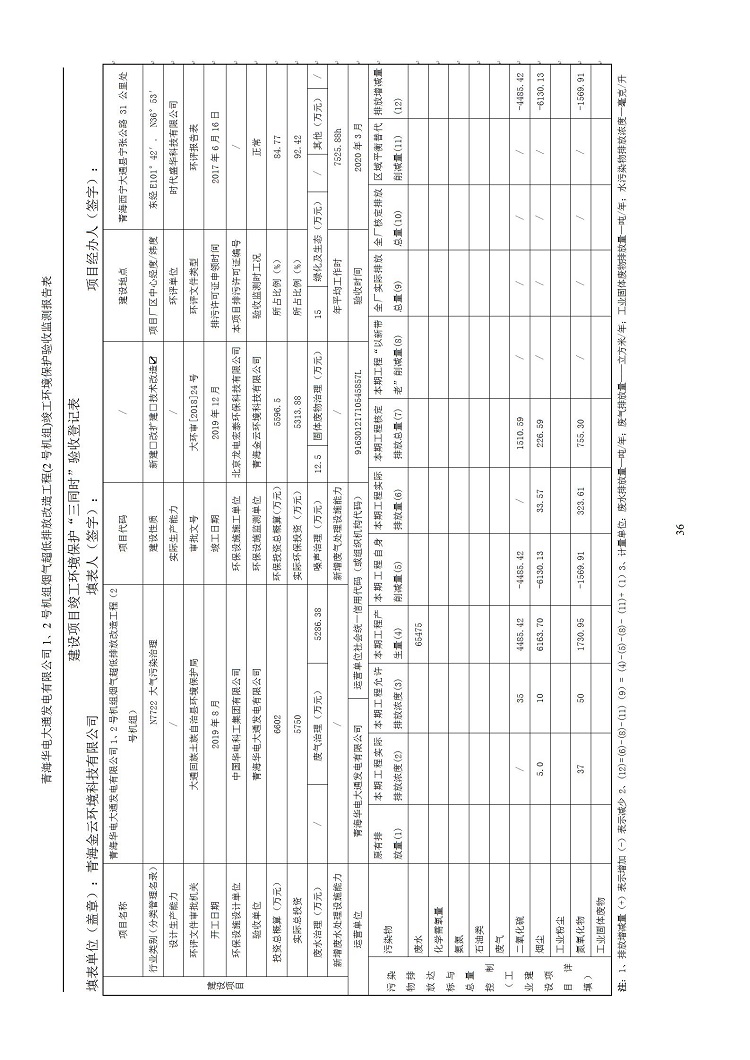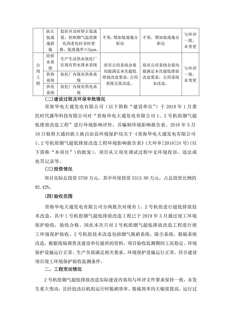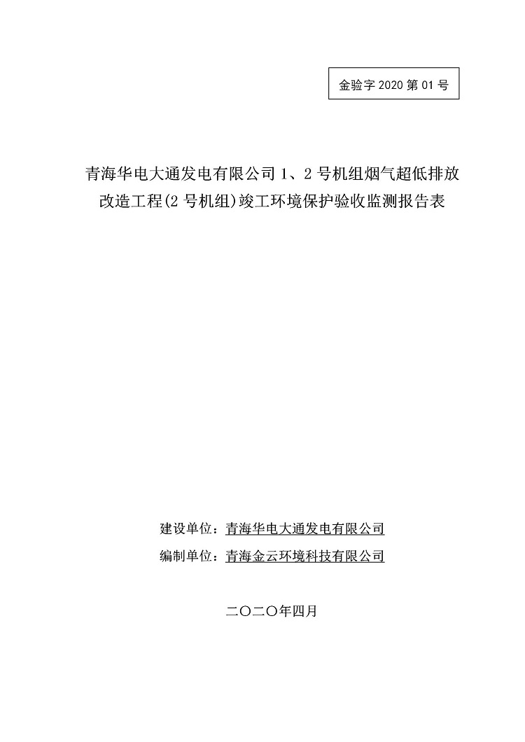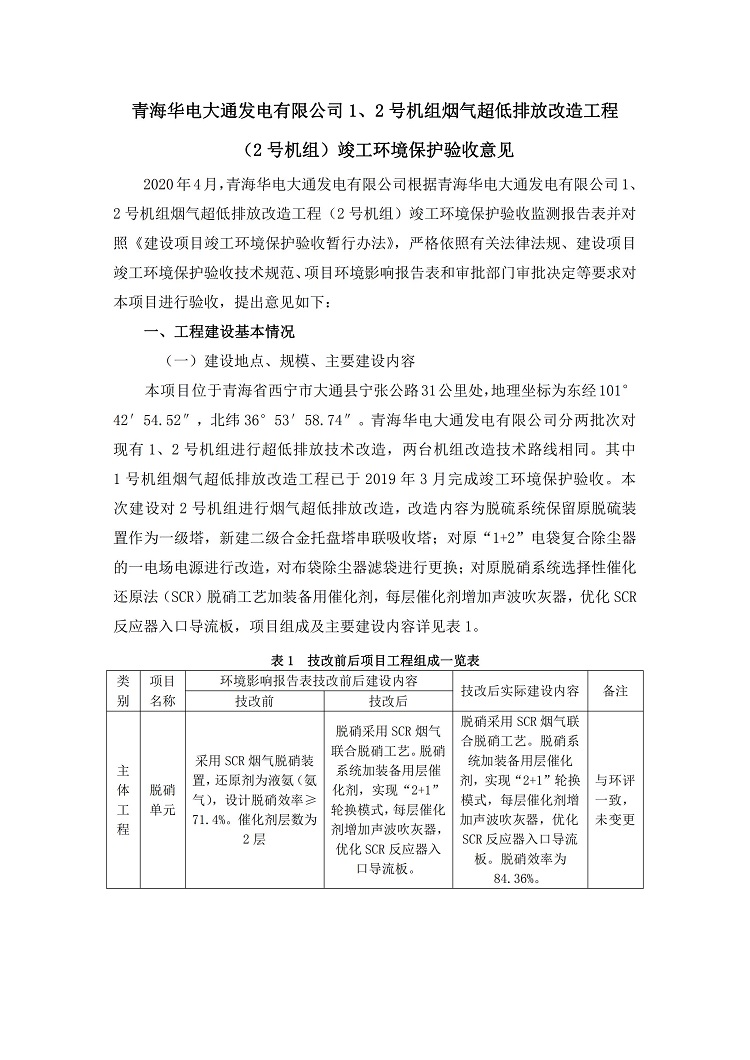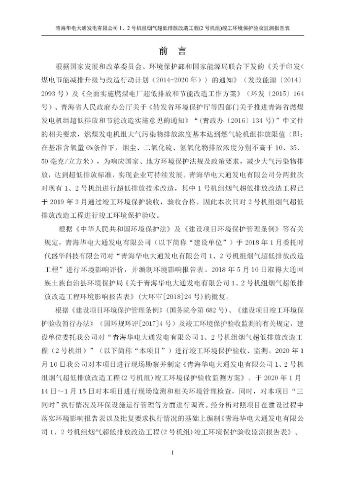 一、項(xiàng)目名稱:青海華電大通發(fā)電有限公司1、2號(hào)機(jī)組煙氣超低排放改造工程(2號(hào)機(jī)組) 竣工環(huán)境保護(hù)驗(yàn)收監(jiān)測(cè)報(bào)告表