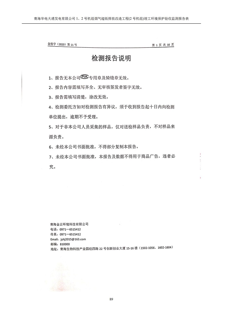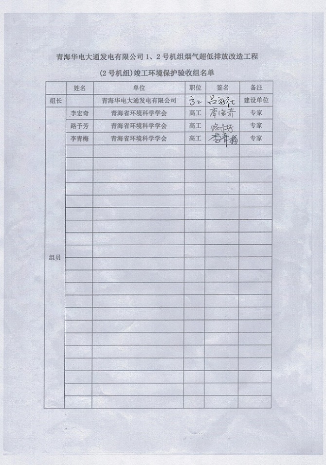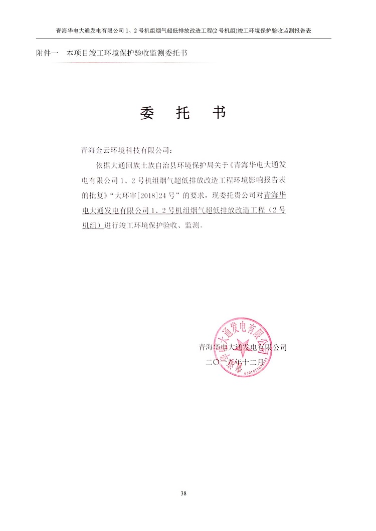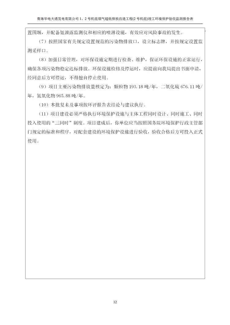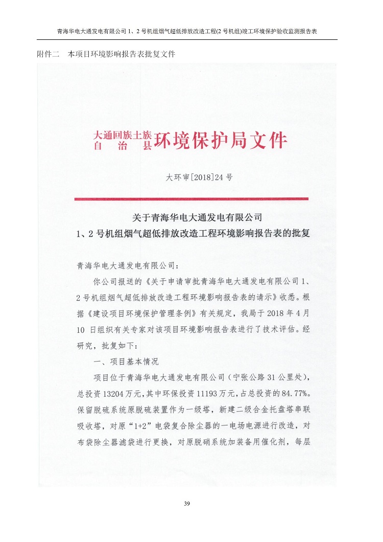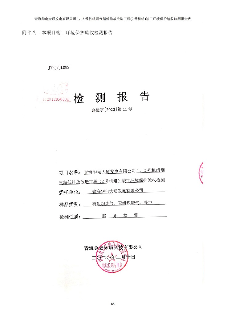 一、項(xiàng)目名稱:青海華電大通發(fā)電有限公司1、2號(hào)機(jī)組煙氣超低排放改造工程(2號(hào)機(jī)組) 竣工環(huán)境保護(hù)驗(yàn)收監(jiān)測(cè)報(bào)告表