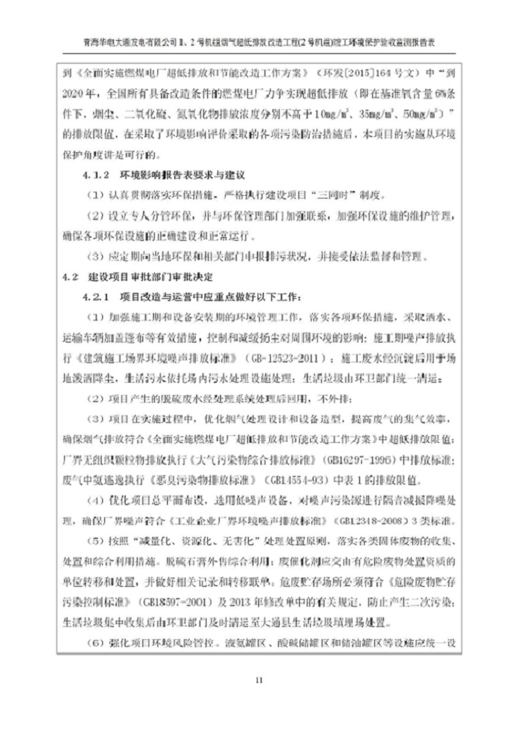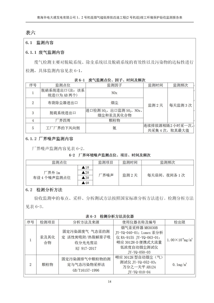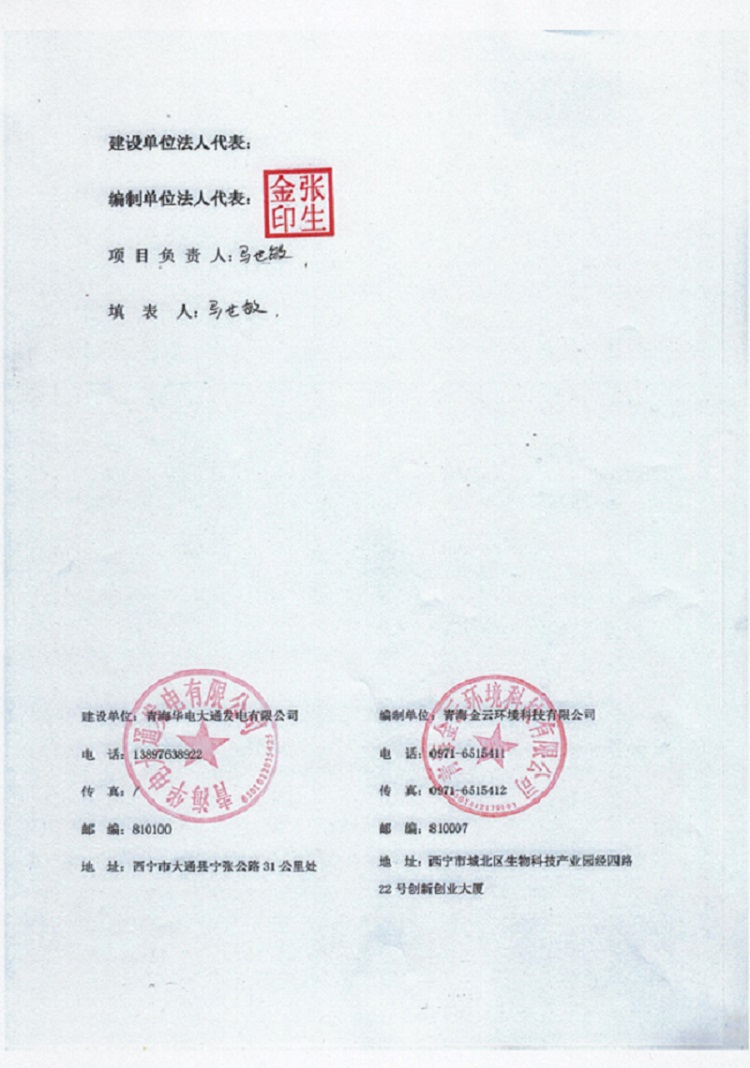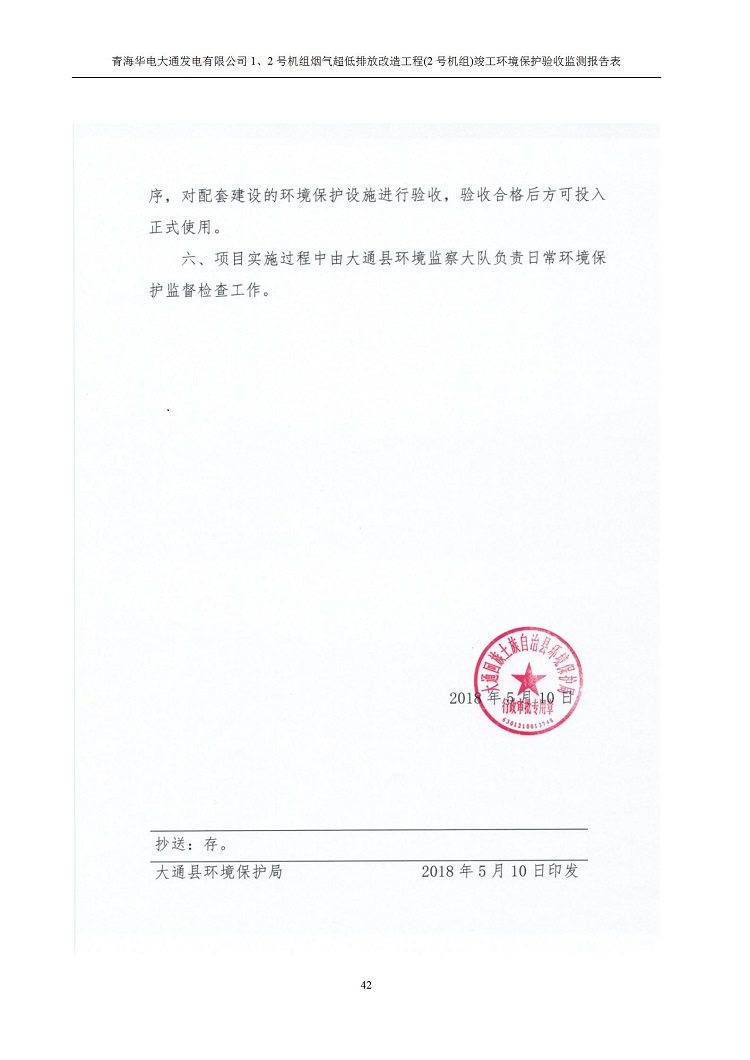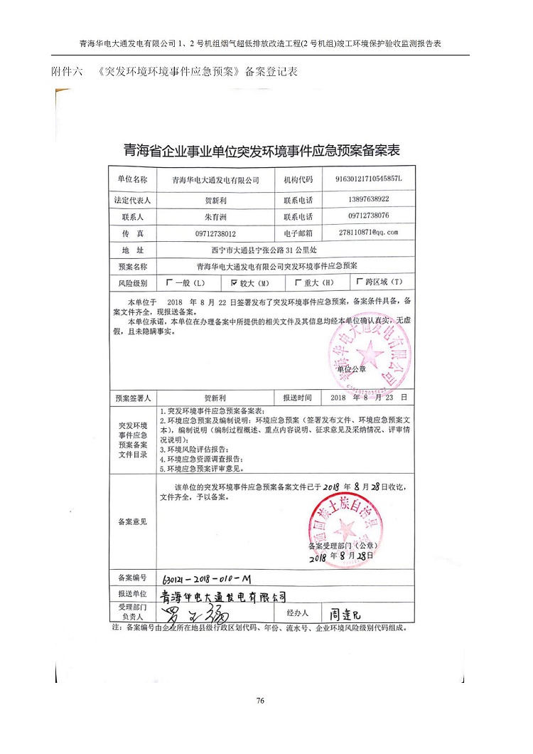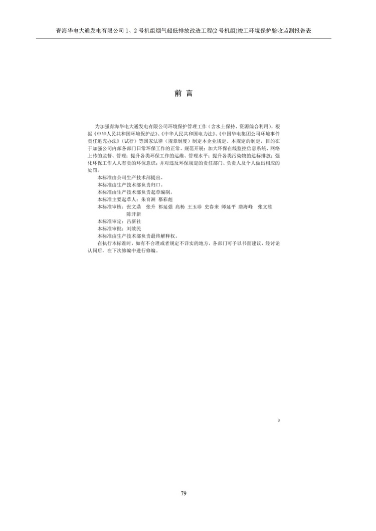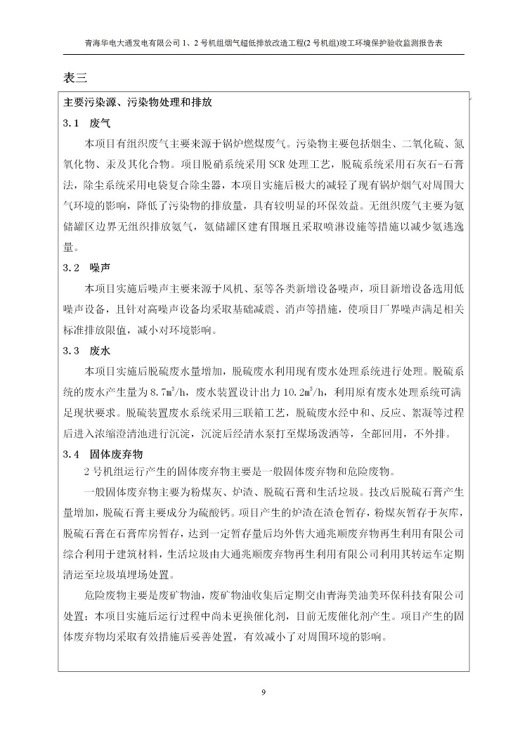 一、項(xiàng)目名稱:青海華電大通發(fā)電有限公司1、2號(hào)機(jī)組煙氣超低排放改造工程(2號(hào)機(jī)組) 竣工環(huán)境保護(hù)驗(yàn)收監(jiān)測(cè)報(bào)告表