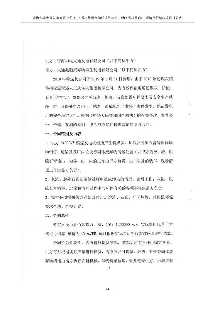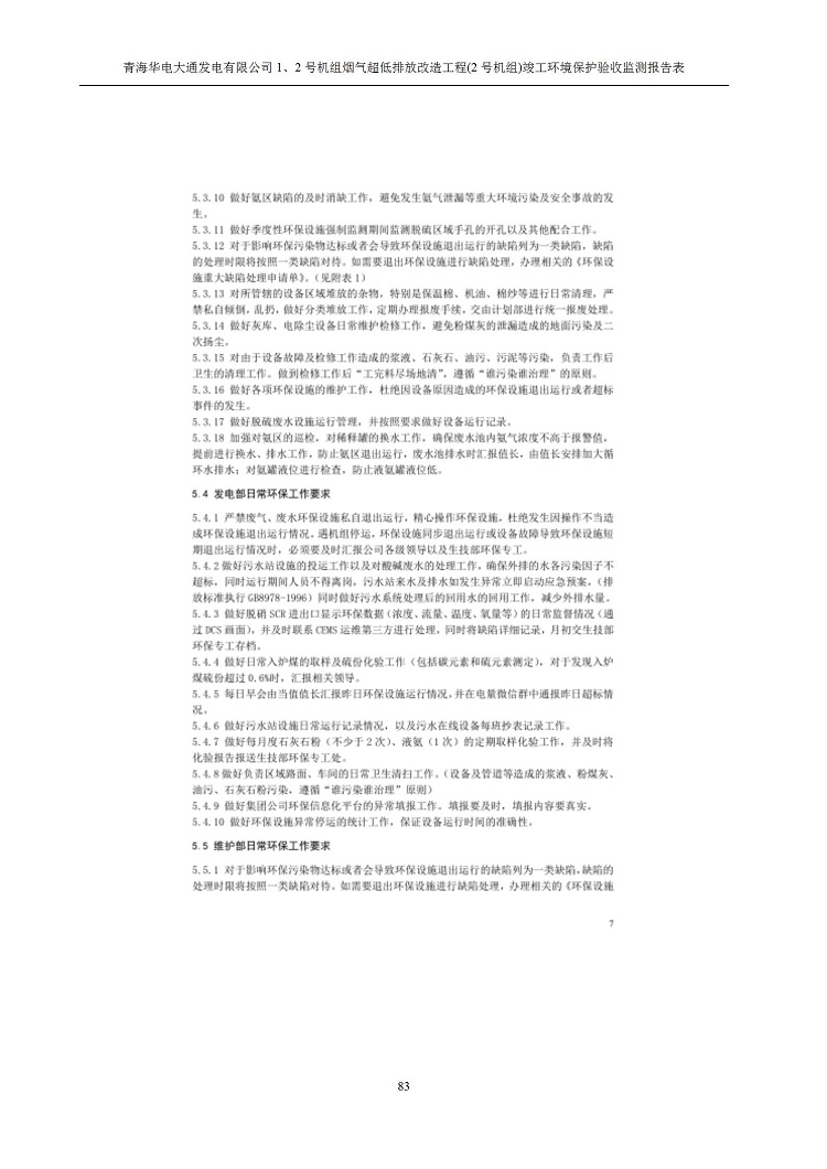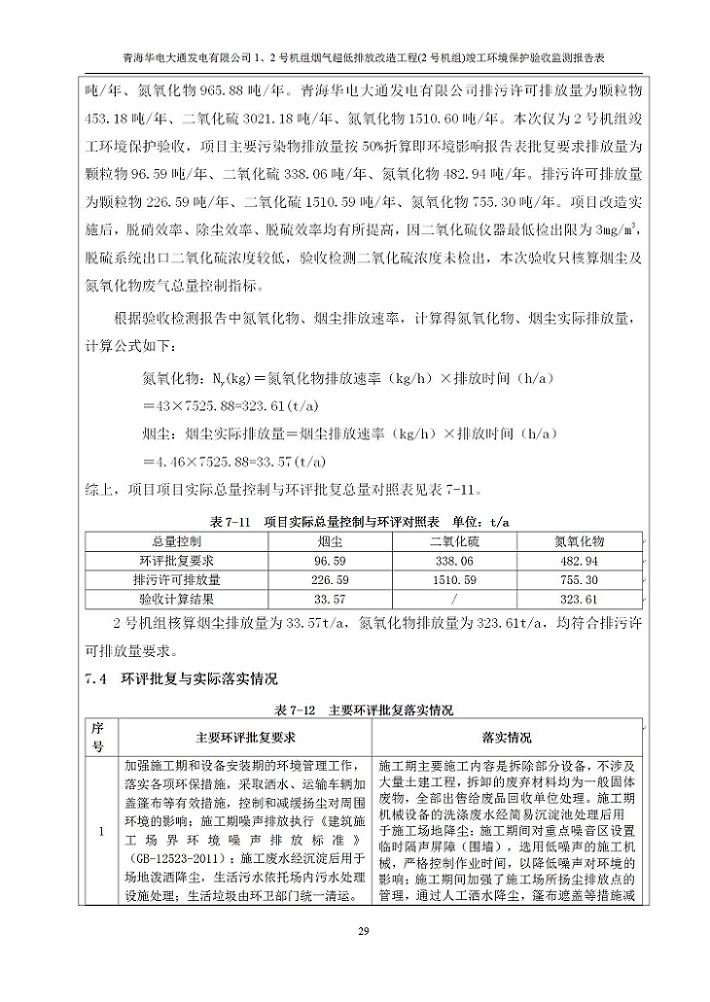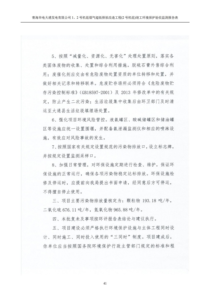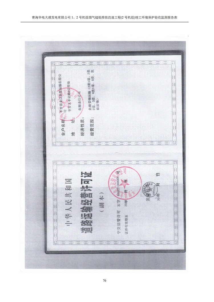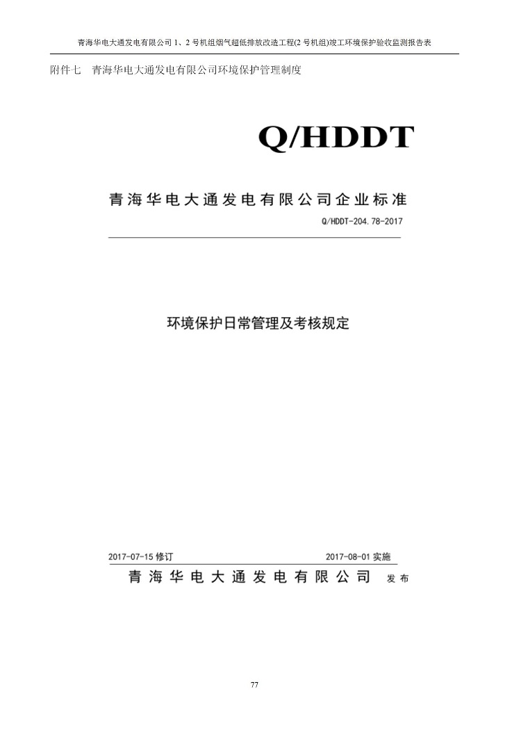 一、項(xiàng)目名稱:青海華電大通發(fā)電有限公司1、2號(hào)機(jī)組煙氣超低排放改造工程(2號(hào)機(jī)組) 竣工環(huán)境保護(hù)驗(yàn)收監(jiān)測(cè)報(bào)告表