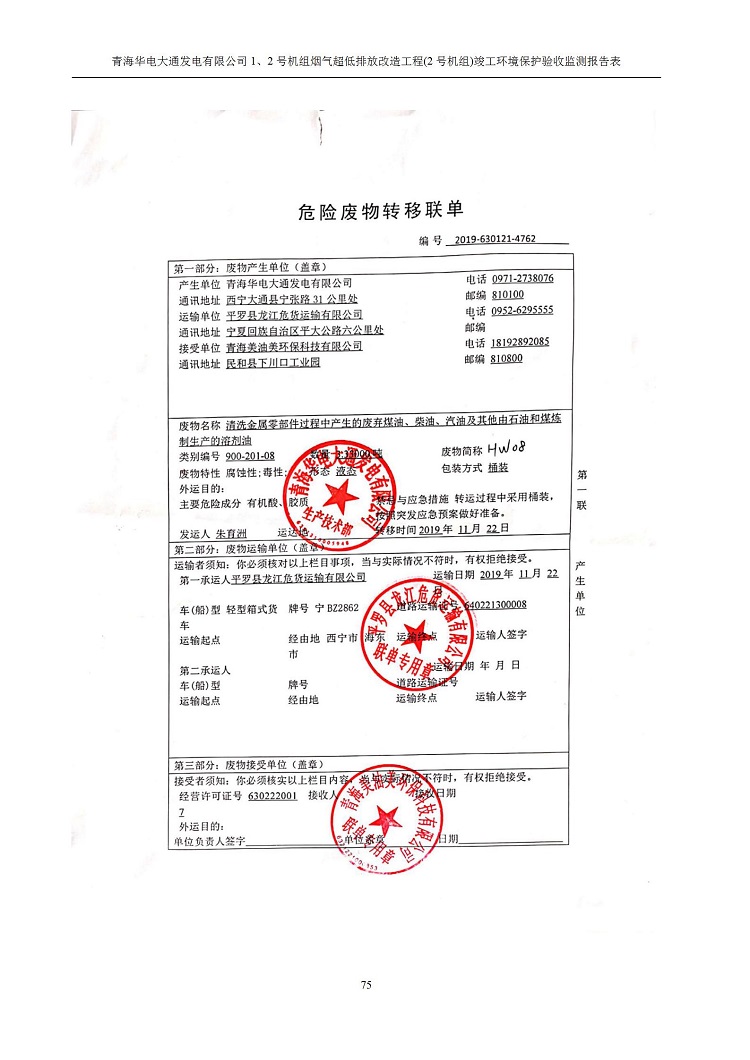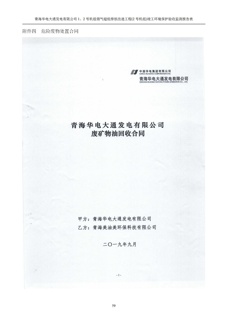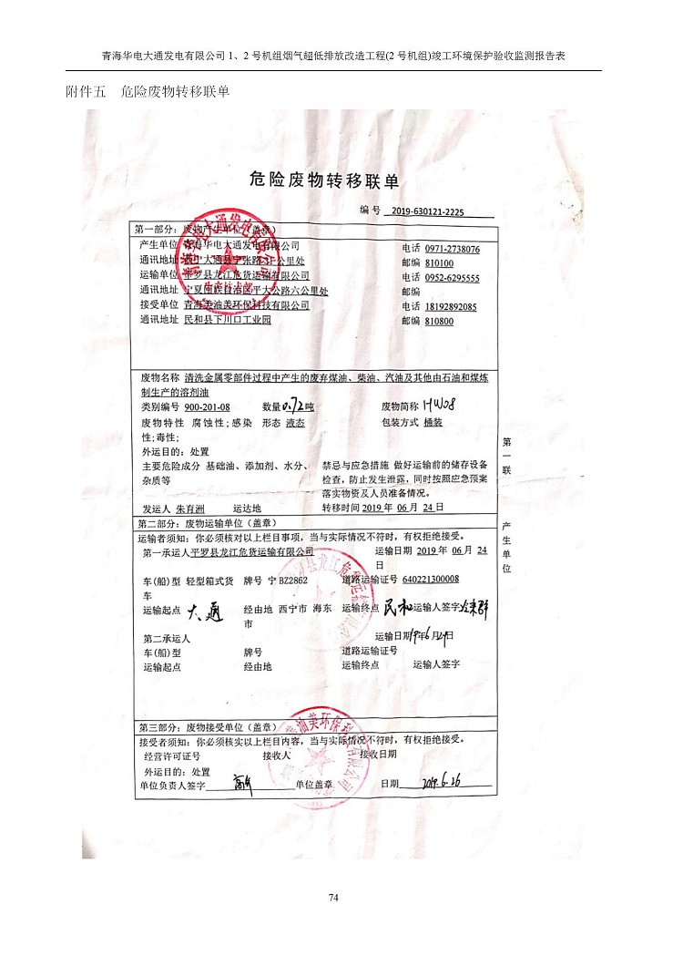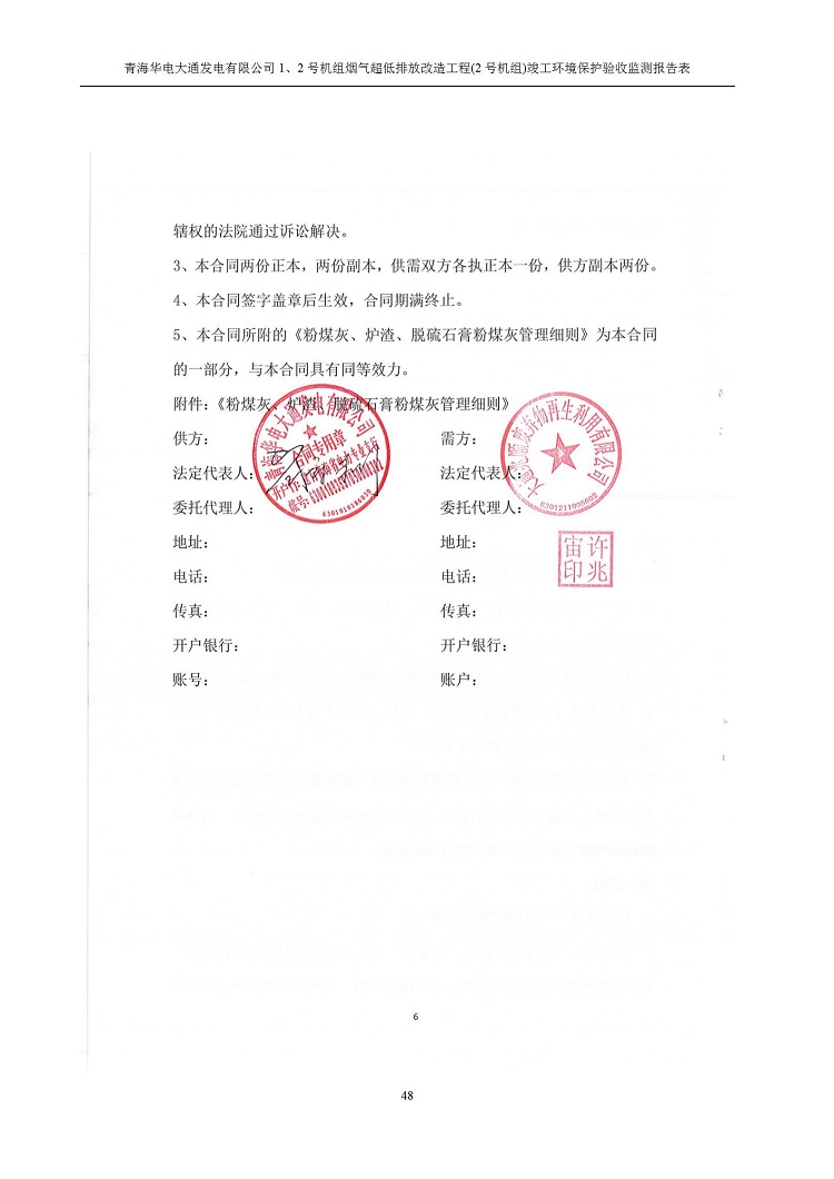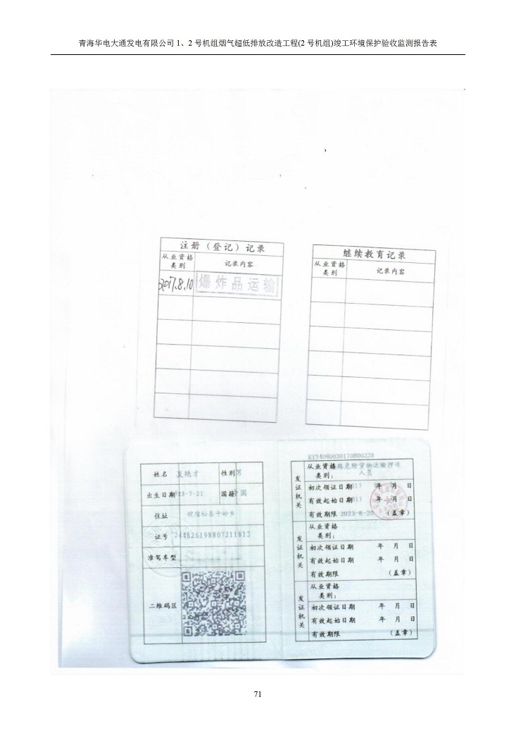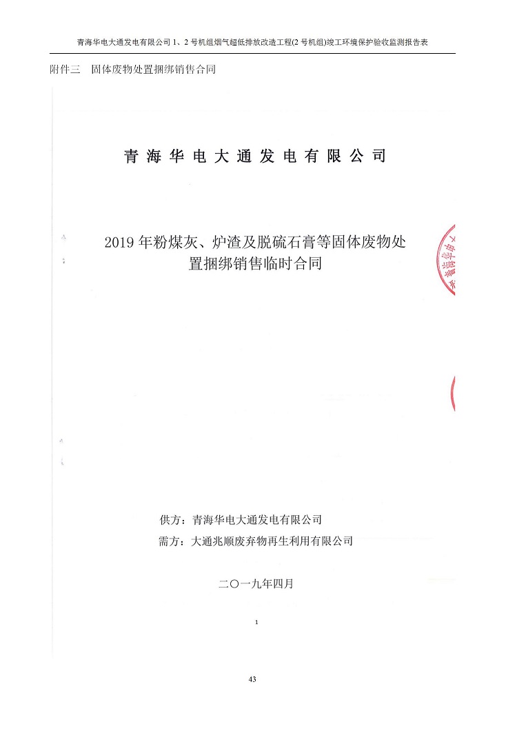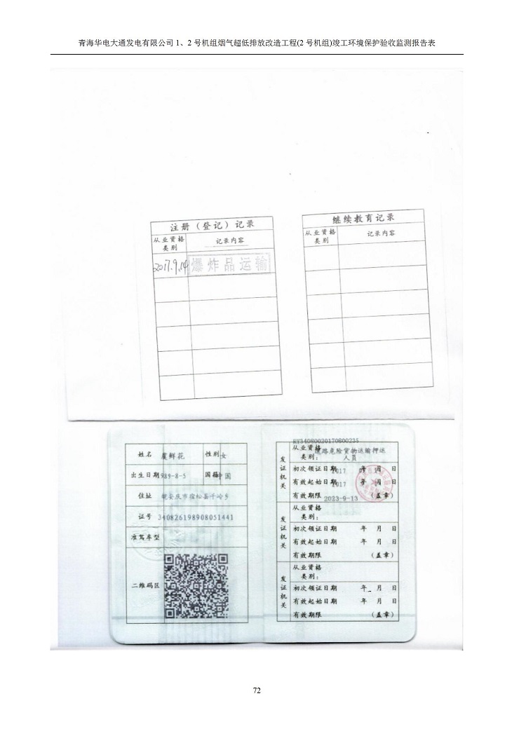 一、項(xiàng)目名稱:青海華電大通發(fā)電有限公司1、2號(hào)機(jī)組煙氣超低排放改造工程(2號(hào)機(jī)組) 竣工環(huán)境保護(hù)驗(yàn)收監(jiān)測(cè)報(bào)告表