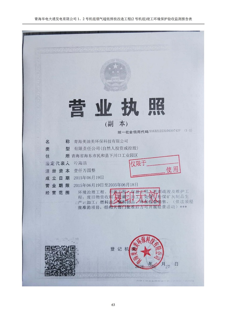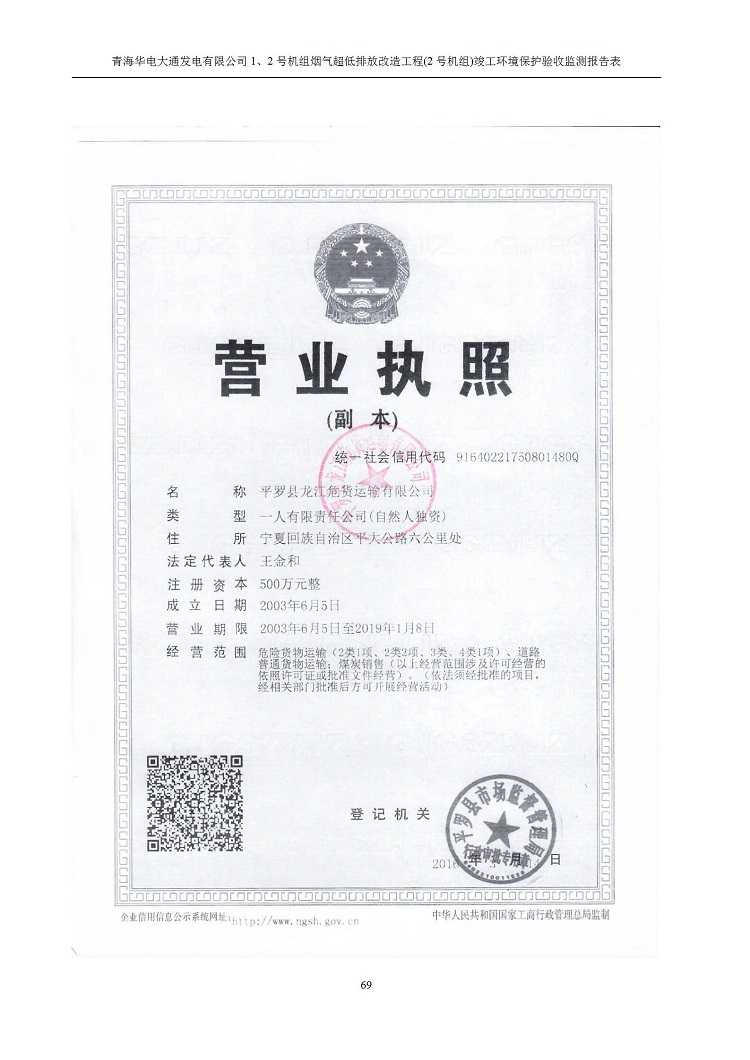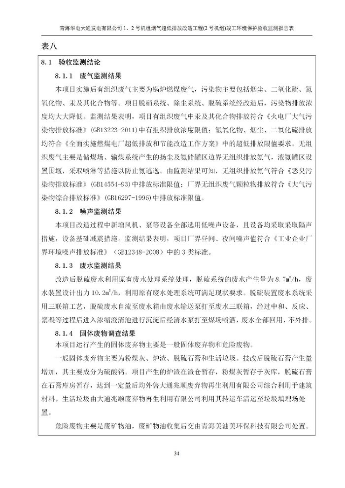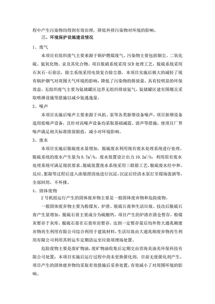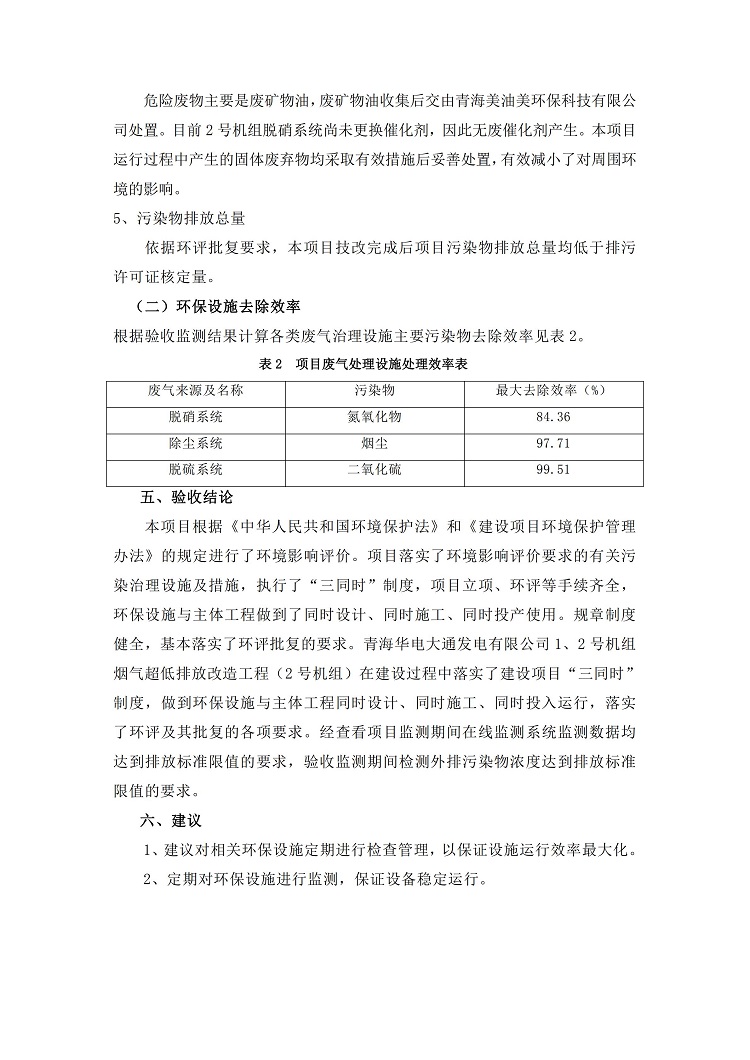 青海華電大通發(fā)電有限公司1、2號(hào)機(jī)組煙氣超低排放改造工程(2號(hào)機(jī)組) 竣工環(huán)境保護(hù)驗(yàn)收監(jiān)測(cè)報(bào)告表公示